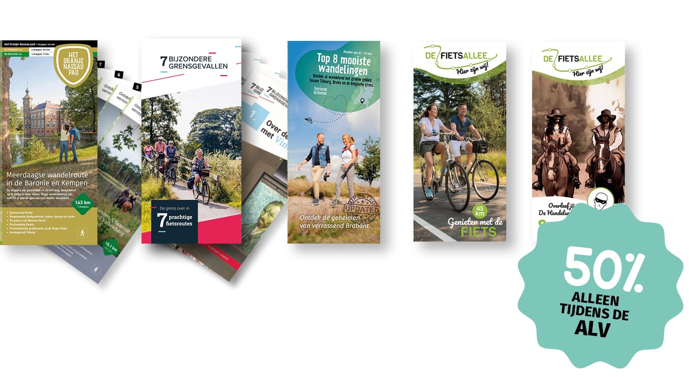 Oplage 10.000 exemplaren – 68 pagina’s – A5-formaat in full color. De brochures zijn gratis! Wandel online door de brochure.