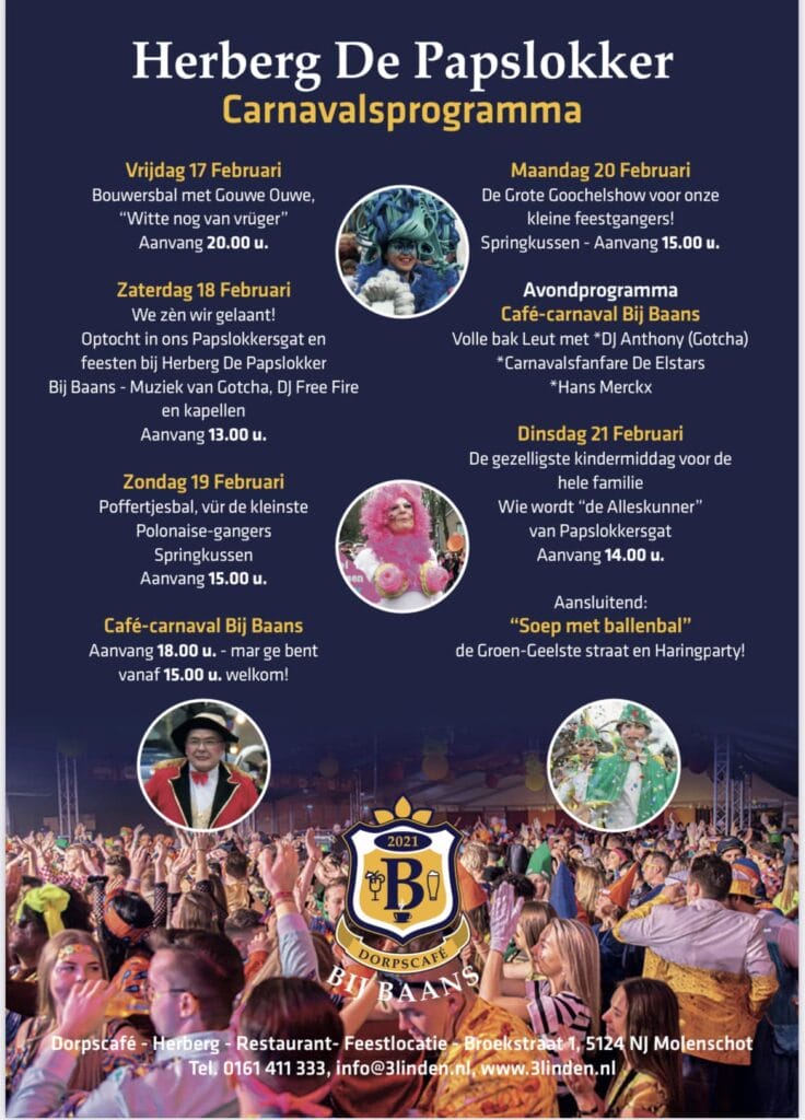 Gezellig carnaval vieren in Molenschot? Het kan weer! Voor jong en oud is er weer van alles te beleven in dit mooie dorpje.