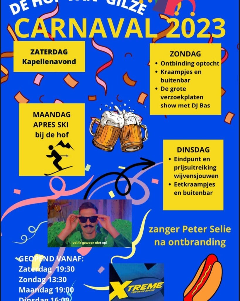 Van zaterdag 18 tot en met dinsdag 21 februari geniet je van de carnavalssfeer bij De Hof van Gilze. Met op zaterdagavond de aftraf in de feestzaal met de Kapellekes. Zondag de mooie carnavalsoptocht en op maandag en dinsdag zijn er ook leuke activiteiten te zien. Tijdens dit evenement kun je bij De Hof van Gilze elke carnavalsdag vanaf 16.00 uur genieten van een speciaal driegangen carnavalsmenu. Ook is er een buitenbar met eetkraampjes en natuurlijk is de cafetaria dagelijks open.