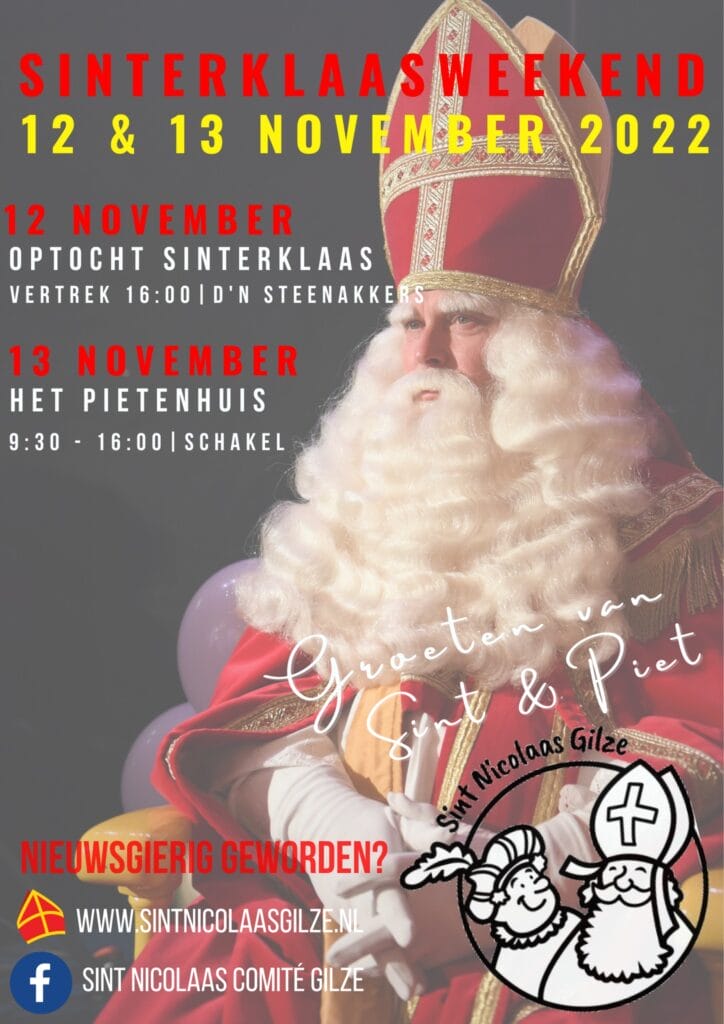 Op zaterdag 12 november kun je de Sint met zijn pieten weer zien tijdens de optocht in Gilze. De optocht start om 16:00 uur. De Sint zou het heel leuk vinden dat jullie een lampje meenemen of verlicht komen, omdat de optocht in de schemering plaatsvindt.