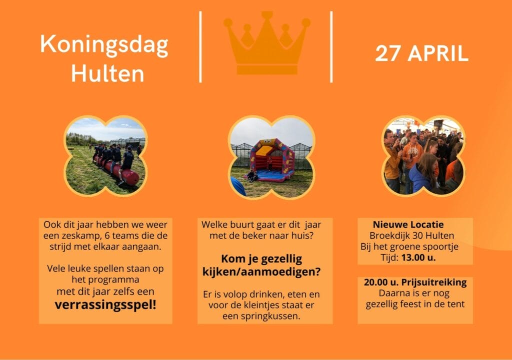 Grensland De Baronie > Evenementen > Koningsdag in Hulten Koningsdag in Hulten zaterdag 27 april 2024 13:00 - 20:00 uur Broekdijk 30 – Hulten zo. 12 april 2026 Culturele Manifestatie Alphen 2026 zo. 12 april 2026 Garageverkoop Rijen ma. 6 april 2026 IVN-natuurwandeling Wolfslaar ma. 6 april 2026 Wandelen voor Alphe d'Huzes