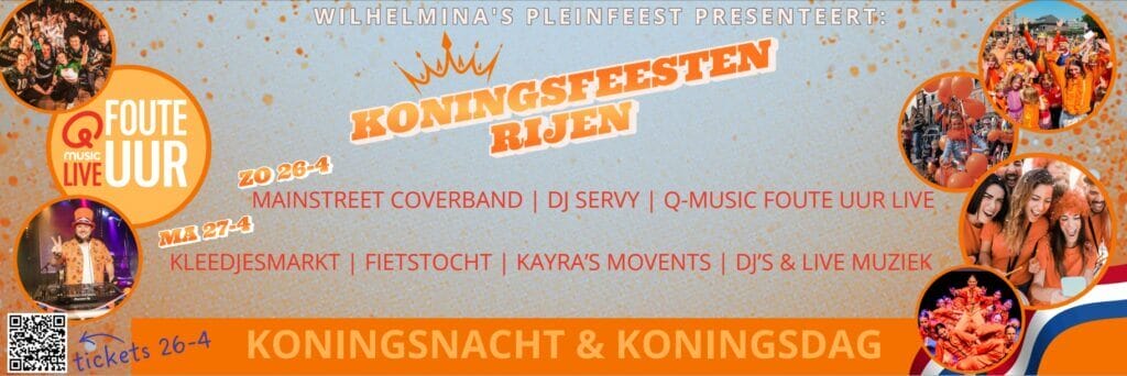 Een geweldig programma met op koningsnacht 26-04: Q music foute uur, Mainstreet en DJ Servy, Haal hiervoor snel je tickets (18+).