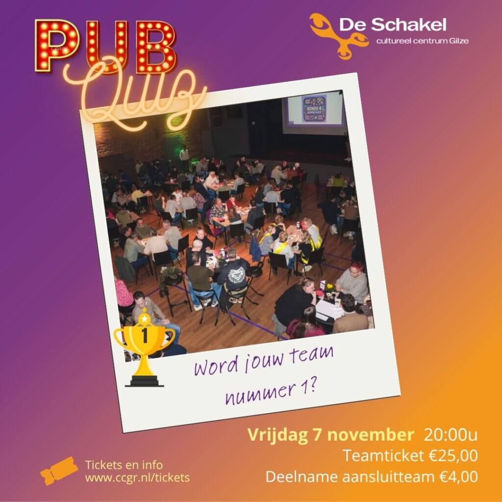 Een Pubquiz in De Schakel! Tijdens de quiz worden door de ervaren quizmasters vragen gesteld over allerlei onderwerpen: van actualiteit tot geschiedenis, van muziek tot achterklap, sport en nog veel meer.