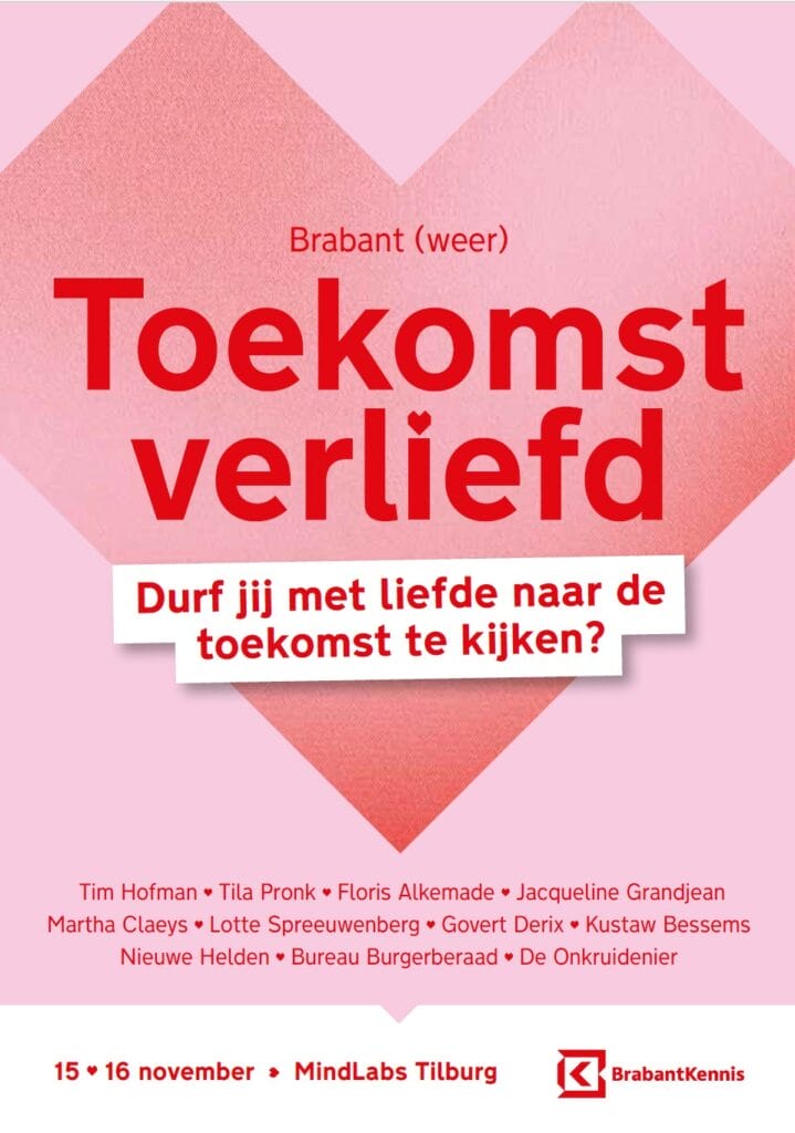 Durf jij met liefde naar de toekomst te kijken? Zet je roze bril op en laat je verleiden door twee dagen vol goede gesprekken, kunst, wetenschap en workshops, op 15 en 16 november in de LocHal en MindLabs, Tilburg.