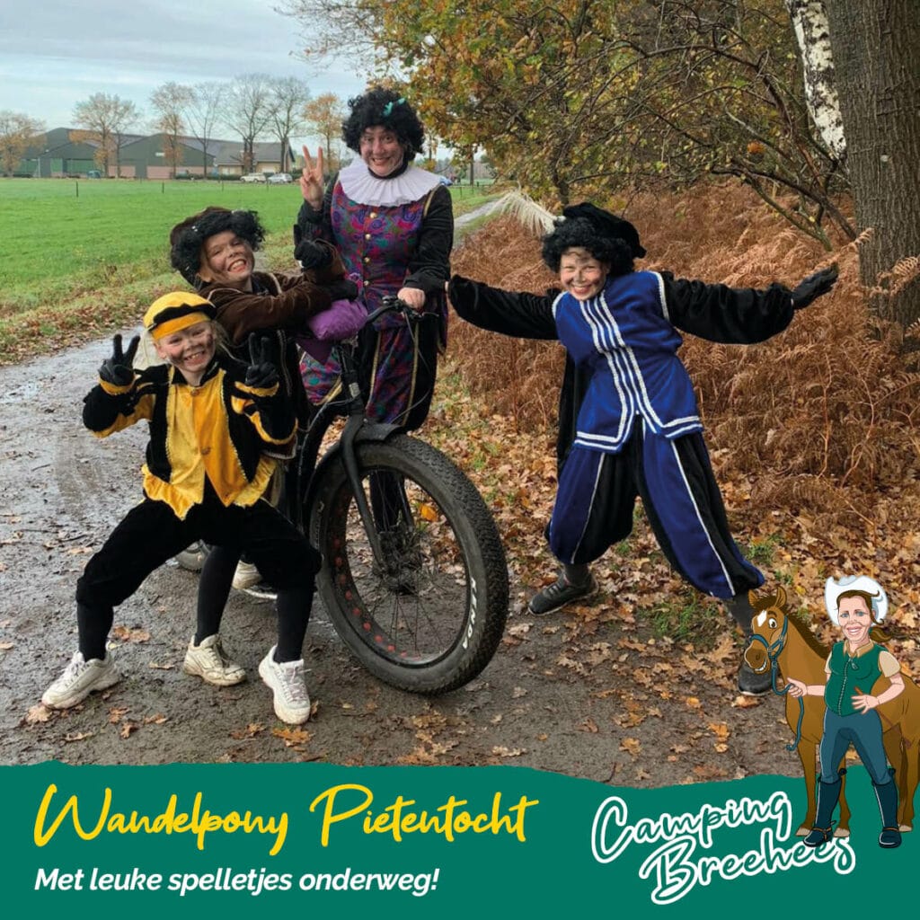 Is jouw kind een echte pony fan en enthousiast van Sinterklaas? Geef hem of haar dan op voor de speciale Wandelpony Pietentocht bij Camping Breehees in Goirle. Onderweg lekker samen spelen met de Pieten, neem je deel aan een spannende speurtocht en na afloop ga je naar huis met een speciaal pietendiploma en mag je nog een cadeautje grabbelen!