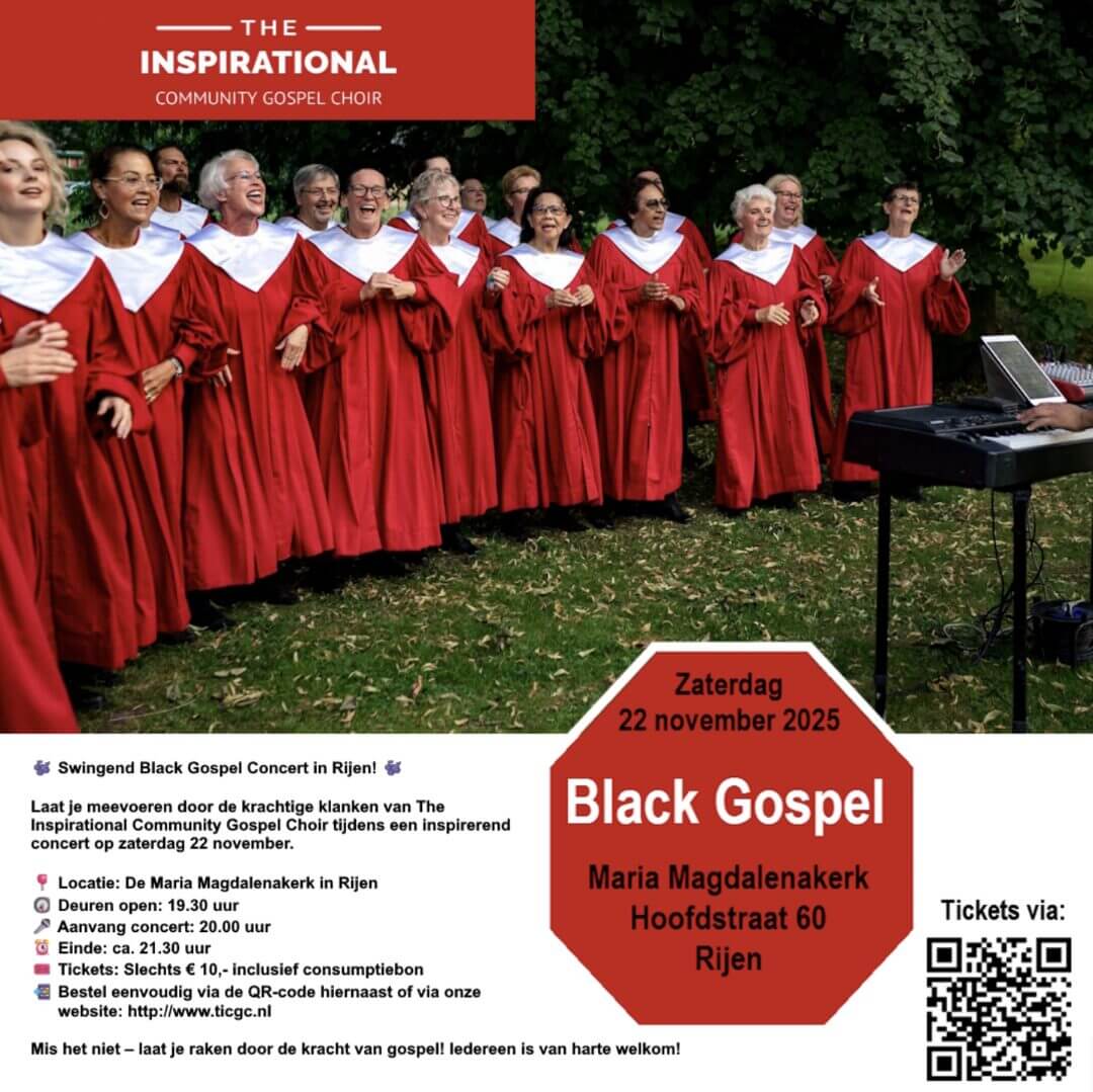 De Maria Magdelakerk in RijenLaat je meevoeren door de krachtige klanken van The Inspirational Community Gospel tijdens dit concert!