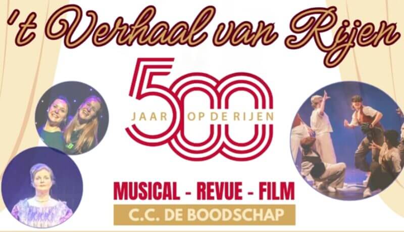 CC De Boodschap, Nassaulaan 62-64, RijenEen show over 500 jaar Rijen, door héél veel talenten uit het dorp. Rijen kent een mooie historie en die gaan we op 28, 29 en 30 november op een unieke wijze tonen in de Boodschap. Alles zit in 1 show verwerkt. Musical, dans en zelfs videobeelden uit een ver verleden.