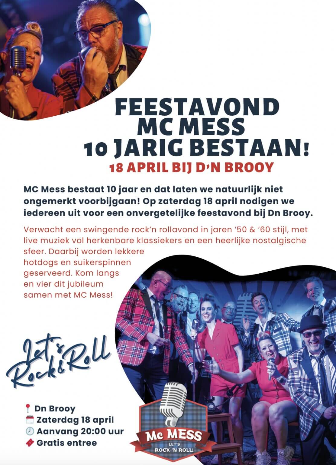 Eetcafé d'n Brooy, Chaamseweg 21, GilzeOp zaterdag 18 april staan de deuren van D’n Brooy open voor een onvergetelijke rock-’n-rollavond in de sfeer van de jaren ’50 en ’60.