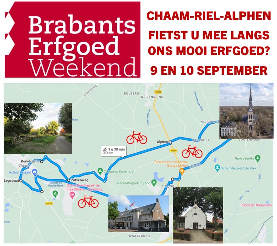 CC Den Heuvel, Heuvelstraat 5, AlphenFiets je in het weekend van 9 en 10 september mee langs mooie erfgoedlocaties tijdens Brabants Erfgoedweekend? We fietsen door Alphen, Chaam en Riel en je maakt kans op een prijs!