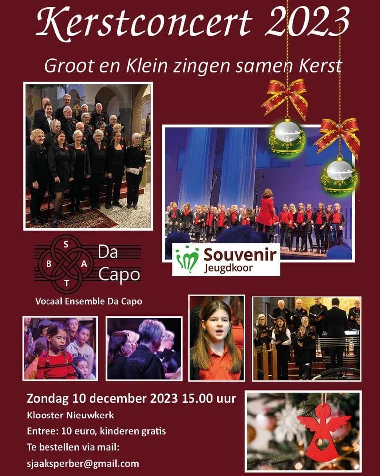Klooster Nieuwkerk Goirle, Nieuwkerk 2, GoirleKom op zondag 10 december naar Klooster Nieuwkerk Goirle. Vanaf 15.00 uur geniet je hier van een mooi en sfeervol Kerstconcert. Groot en klein zingen samen Kerst. Zien we je dan?