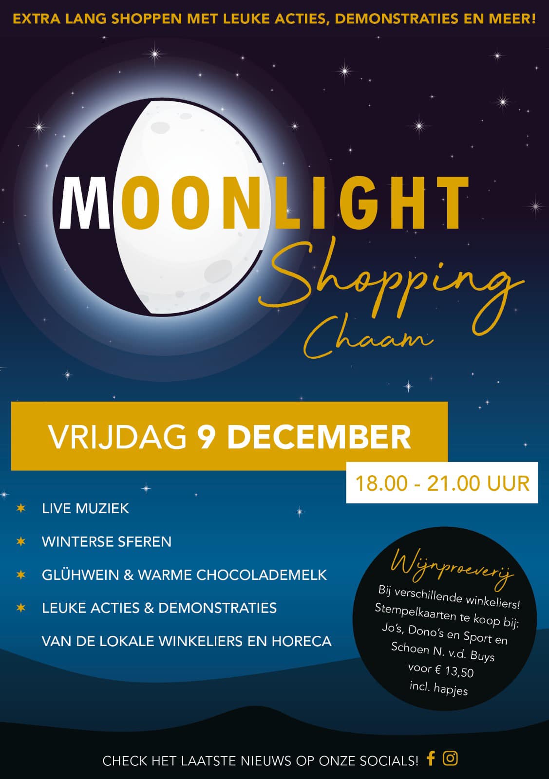 Dorpsstraat 48, 4861 AD Chaam Dorpsstraat 48, ChaamKom vrijdag 9 december gezellig met een winters sfeertje shoppen in Chaam! Veel kaarsjes zullen dan binnen en buiten branden, er is glühwein, warme chocolademelk en gezellige live muziek.