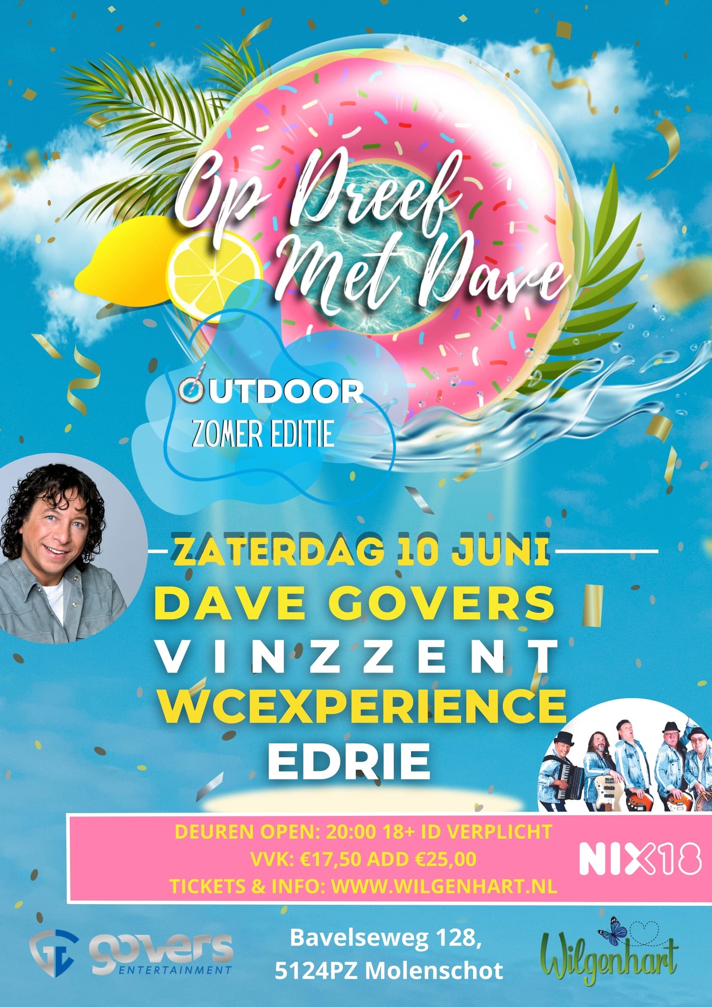 wilgenhartVan de kroeg, naar het weiland. Kom gezellig naar 'Op Dreef met Dave Outdoor' bij Wilgenhart in Molenschot. Het belooft een geweldige avond te worden vol met muziek, drankjes en gezelligheid in de openlucht. Mis deze onvergetelijke avond niet!