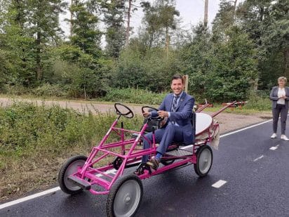 Na een hartelijke ontvangst bij de Steengroeve liepen alle partijen over de pas aangelegde Fietsallee door de Chaamse Bossen richting het Ossengoor. Midden op het kruispunt van de Oude Maastrichtse Baan en het Geuzenpad – historische grond – werd stilgestaan om de samenwerkingsovereenkomst te ondertekenen. Het Geuzenpad namelijk was een oud kerkpad uit de tijd van de Reformatie, tussen de kerken van Gilze en Chaam. En de Oude Maastrichtse Baan was een eeuwenoude handelsroute tussen Dordrecht en Maastricht. Tegenwoordig is het de gemeentegrens tussen Alphen-Chaam en Gilze en Rijen.